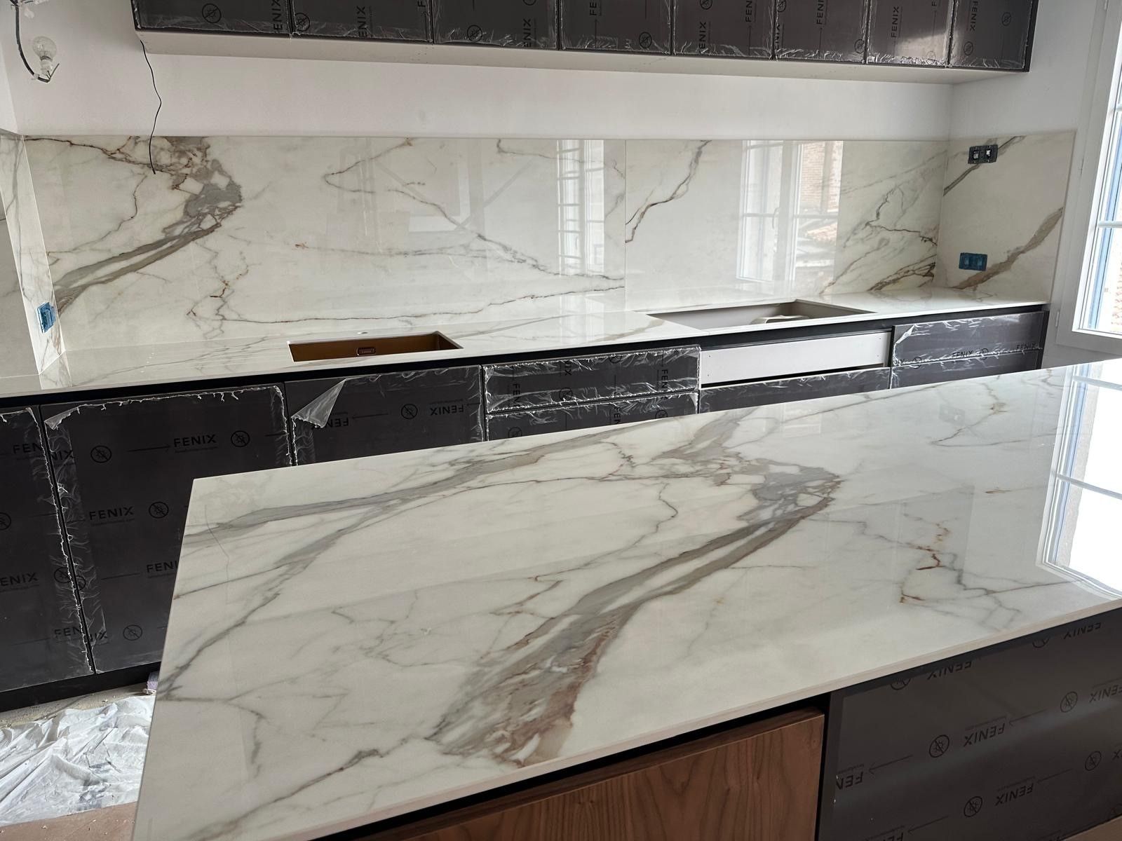 Réalisation de plans de travail en Calacatta Ice de la gamme Sensa du groupe Cosentino, sol en terre cuite. Réalisation sur mesure des plans de travail avec relevés des côtes, découpes, usinages et pose des plans de travail par nos équipes de pose. Fourniture et traitement sur place par nos équipes des terres cuites. Marbrerie Barthe - 31430 Gratens - www.barthe.fr - contact@barthe.fr - Tél: 0561985101 - #calacattaice #calacattaicecosentino #cosentino #cosentinodesign #sensa #sensacosentino #marbrerie #marbreriebarthe #barthesa31 #barthe #barthesa #trancheonyx #tranchesonyx #plaqueonyx #plaquesonyx #decorateurinterieur #decorationinterieur #architectedinterieur #architectetoulouse #designer #barthemarbrerie #cosentinodesign #plandetravail #plandetravailcuisine #plandetravailbarthe #plansdetravailbarthe #carrelagesenterrecuite #carrelagesenterrecuitebarthe #carreauxenterrecuite #traitementterrecuite #traitementterrecuitebartheButton