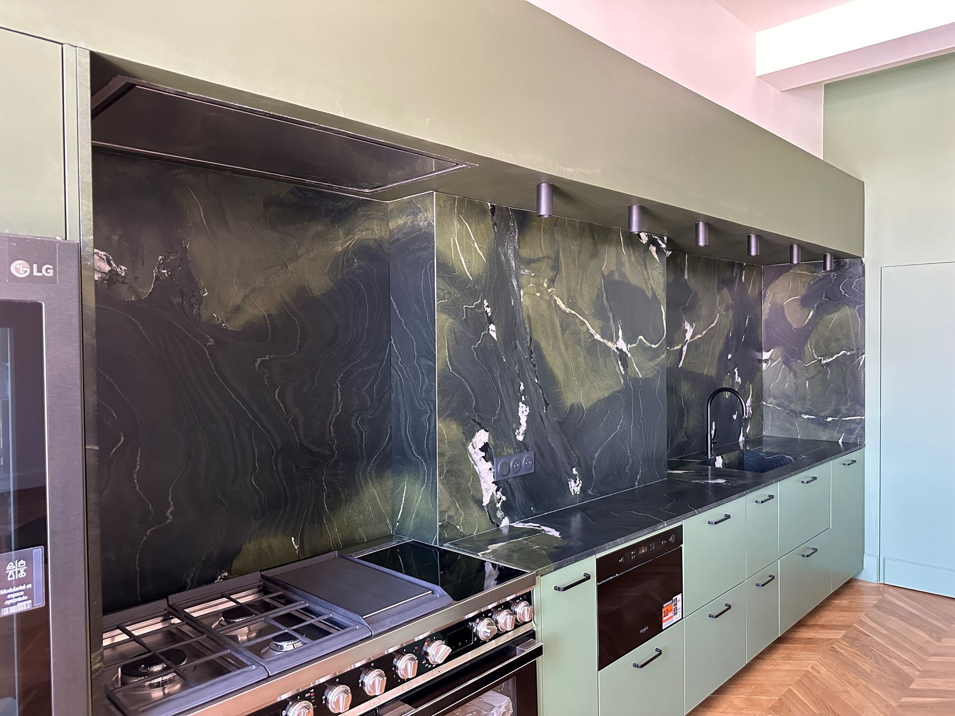 Création d’un plan de travail avec évier intégré sur mesure dans la même matière en quartzite Avocatus effet cuir. L’Avocatus ou l’Avocado est un quartzite vert foncé traversé par de larges lignes noires. Matériel qui vient du Brésil. Marbrerie Barthe - 31430 Gratens - www.barthe.fr - contact@barthe.fr - Tél: 0561985101 - #avocatus #avocado #granitavocatus #quartziteavocado #quartziteavocatus #evierassemblage #eviergranit #éviergranit #eviergranit#plandetravail #granit #architectedinterieur #marbrerie #marbreriebarthe #barthesa31 #barthe #architecteinterieur #agenceurdinterieur #agenceur #decorateurinterieur #marbrerie31 #marbrier #marbrier31Button
