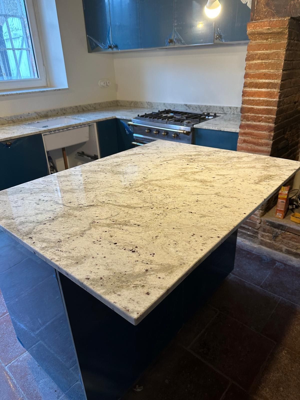 Tranche en granit Patagonia. Le Patagonia est un type de granit qui trouve son origine au Brésil, précisément dans la Ville de Galilei, située dans l’État du Minas Geraius. Cette roche volcanique résulte de la fusion de morceaux brisés de diverses pierres naturelles telles que le quartz, le feldspath, les ambiolites, le mica et l’oxyde de fer. Possibilité de rétro éclairage des plans de travail. Marbrerie Barthe - 31430 Gratens - www.barthe.fr - contact@barthe.fr - Tél: 0561985101 - #patagonia #granitpatagonia #marbrerie #marbreriebarthe #barthesa31 #barthe #barthesa #tranchegranit #decorateurinterieur #decorationinterieur #architectedinterieur #architectetoulouse #designer #barthemarbrerie #barthesa31 #volvestre #carbonne #gratens #occitanie #toulouseButton