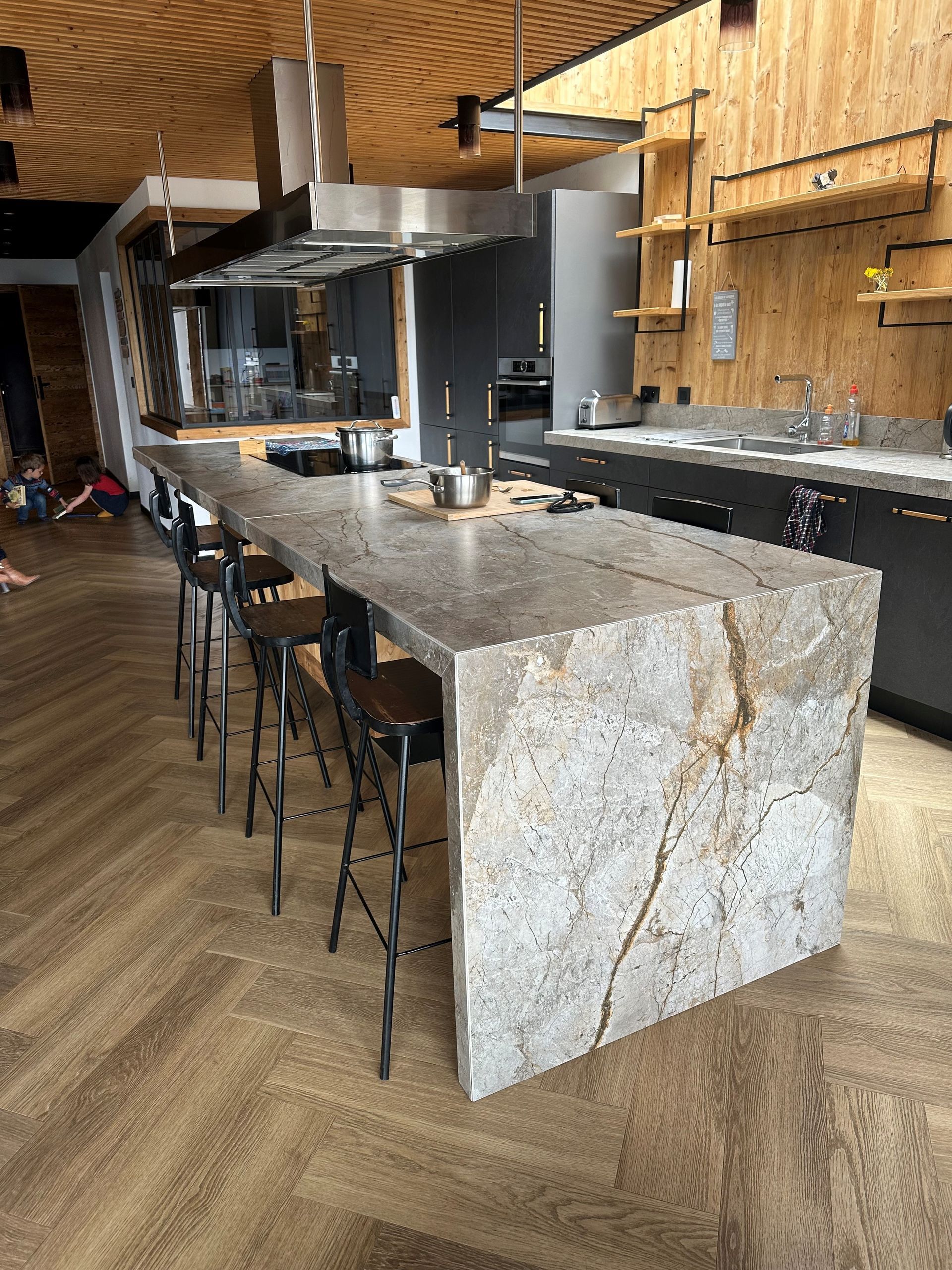Îlot central en céramiques avec découpes au jet d’eau à 46 degrés pour les retombées. Découpes au jet d’eau et façonnages de toutes types de céramiques et autres matières. Découpe au jet d’eau et Marbrerie Barthe - 31430 Gratens - www.barthe.fr - contact@barthe.fr - Tél: 0561985101 - #planceramique #planencéramique #decoupeceramique #plandetravail #plansdetravail #plandetravailcuisine #plandetravailgranit #plansdetravailsurmesure #plandetravailsurmesure #plandetravailcarrare #marbredecarrare #cuisinistetoulouse #cuisinistes #cuisiniste #cuisinedeco #architectedinterieur #marbrerie #marbreriebarthe #barthesa31 #barthe #architecteinterieur #agenceurdinterieur #marbrerie31 #marbrier #marbrier31 #decoupeaujetdeau #découpeaujetdeau #decoupeaujetdeaubarthe #découpeaujetdeaubartheButton